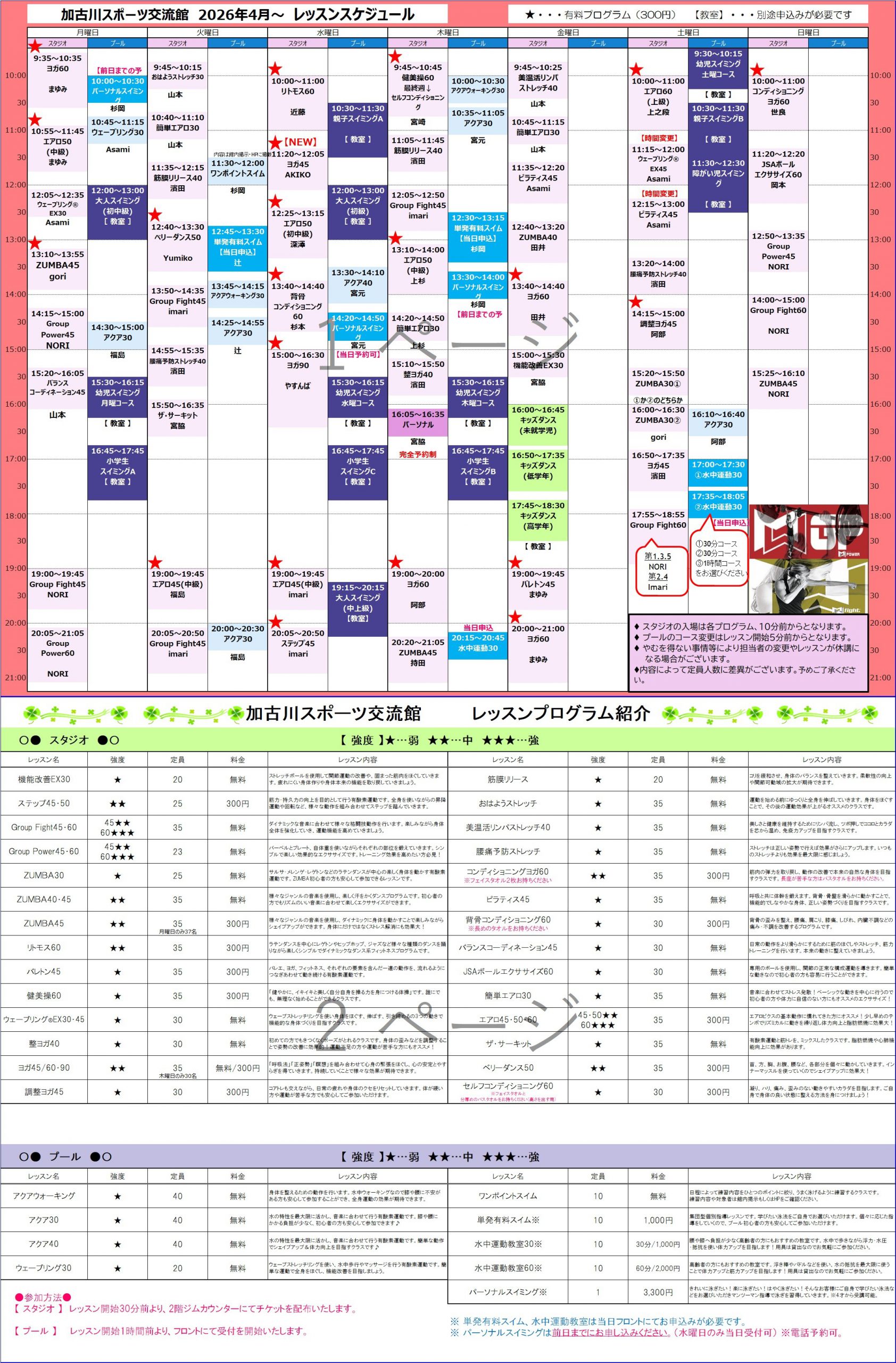 ※水曜日ワンポイントスイムの受付時間が10月より変更となっています。
