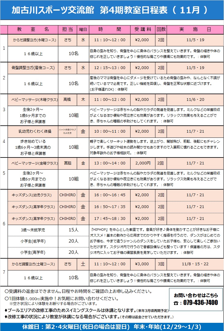 ★加古川スポーツ交流館の教室紹介★