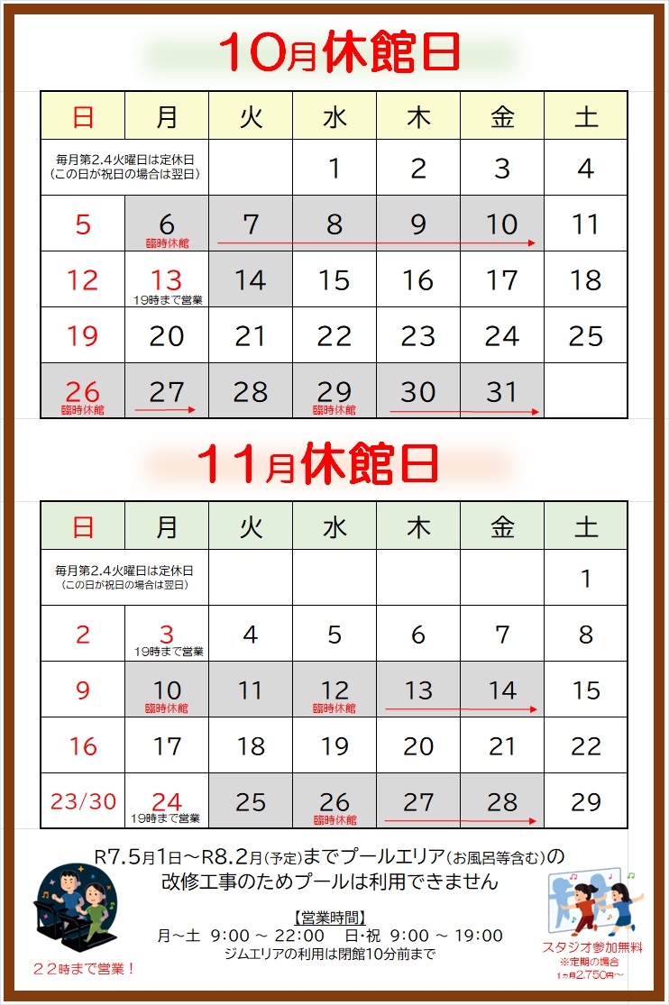 また、スタジオレッスンも参加可能です。(有料レッスン有り) スケジュールに★マークがついているレッスンはウェルネスプログラムチケット(300円)が必要です。券売機にてチケットの購入をお願いします。スタジオレッスン参加ご希望のお客様はレッスン開始30分前より2階ジムカウンターにて参加チケットをお取りください。(先着順)