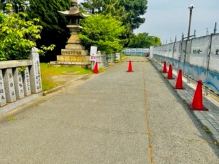 A.現在プールエリアの改修工事のため、道路を挟んだ向かい側第2駐車場をご利用ください。入口は花壇に沿って歩くと赤コーンでルート案内をさせていただいております。駐輪場より施設入り口まで徒歩2分程度。