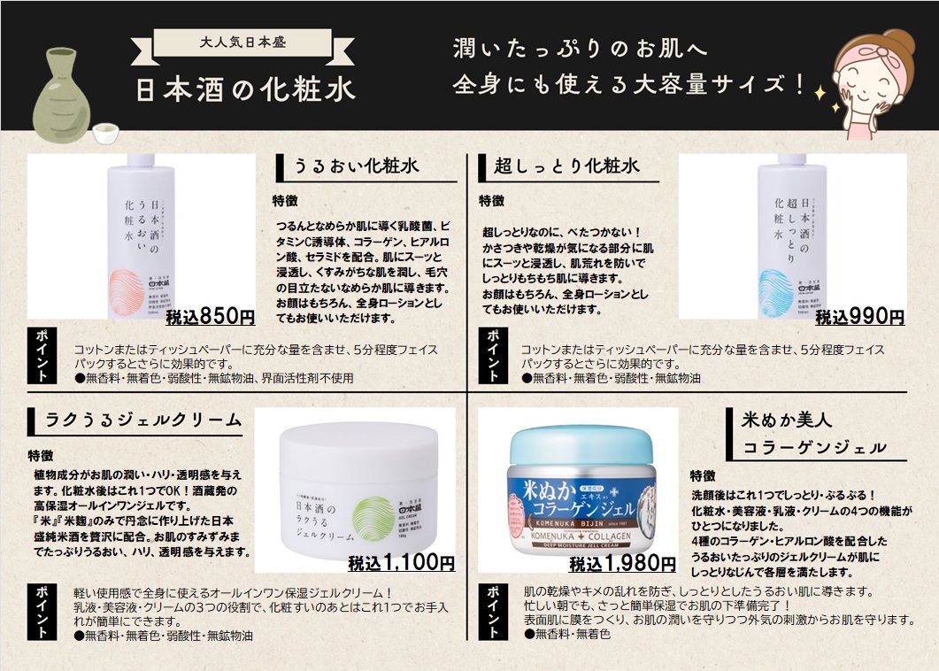 日本酒由来のスキンケアとして大人気の商品、”日本盛の化粧水”を入荷しました👏現在、1階フロント横にておすすめしております💁♀️